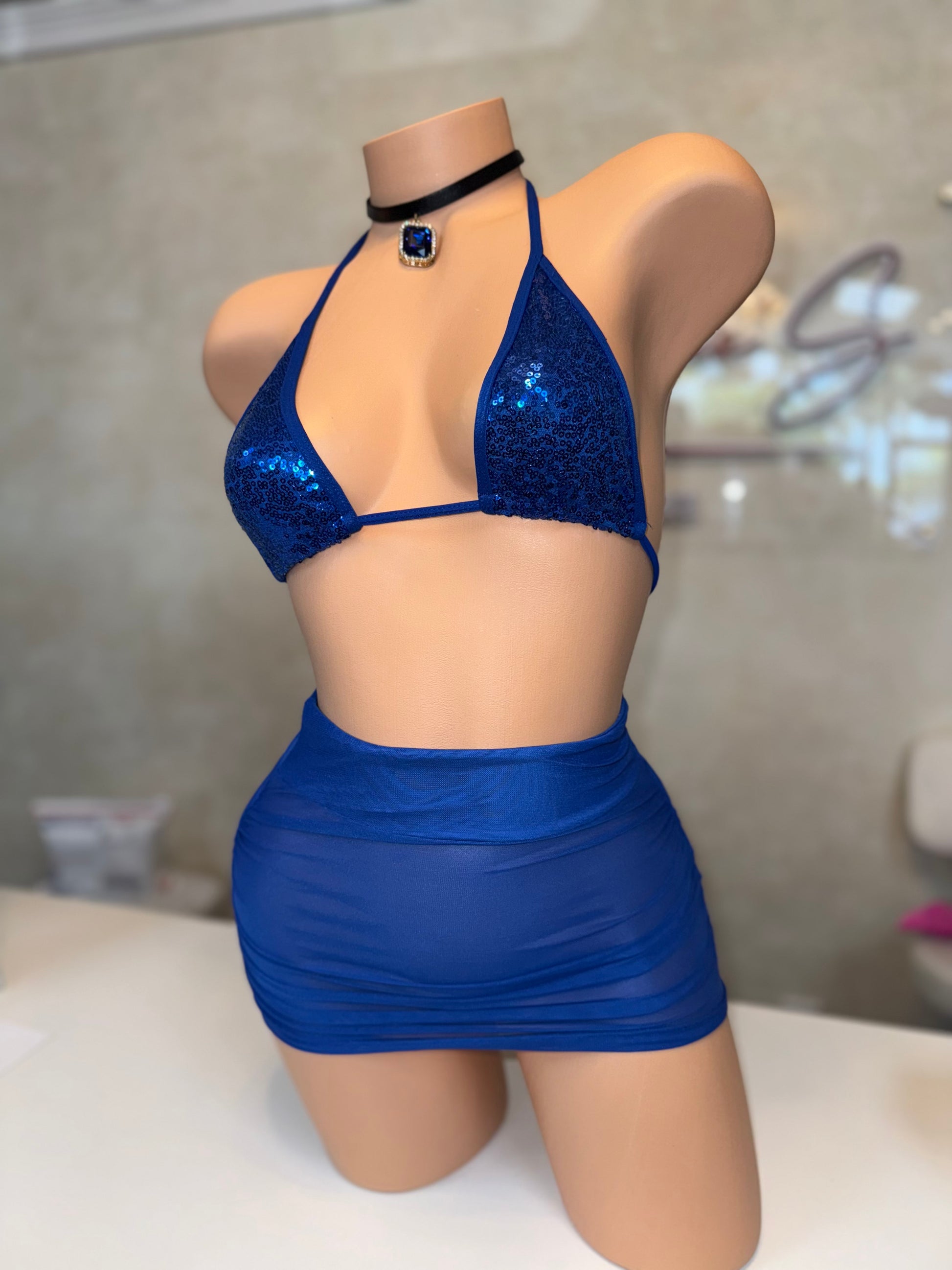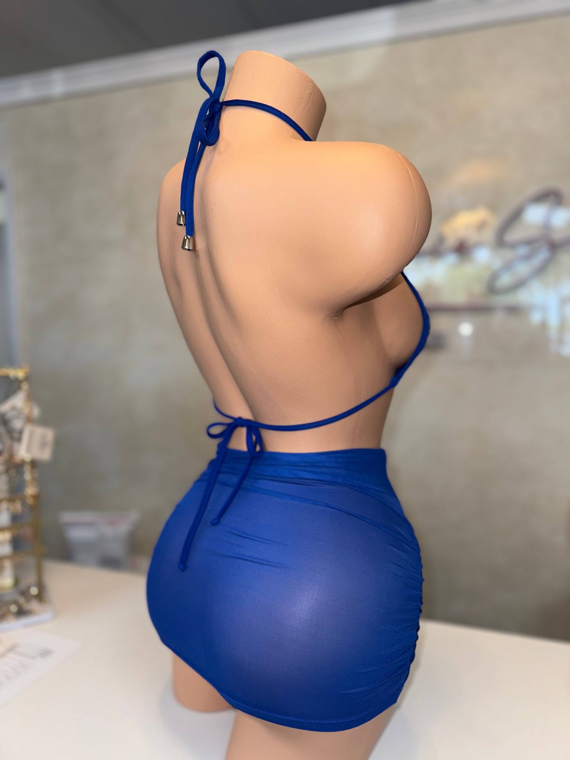 2 Pieces set on Royal Blue-Free Size top with see through Skirt