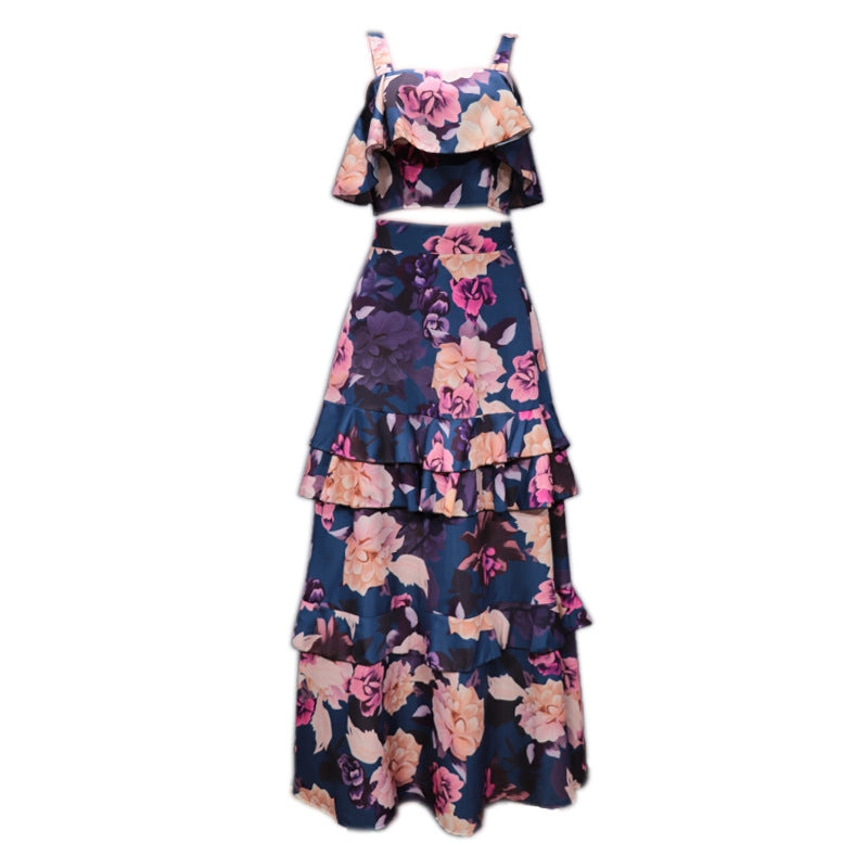 Printed Ruffled Camisole Top and Maxi Skirt Two-Piece Set