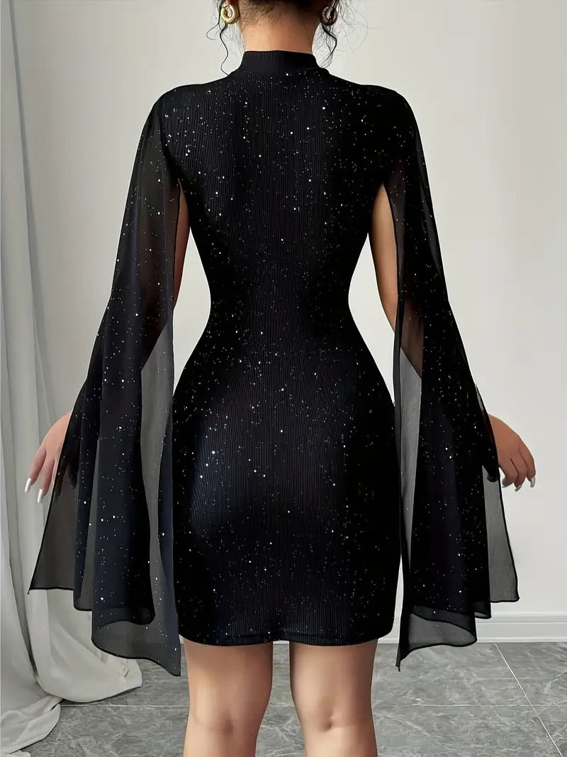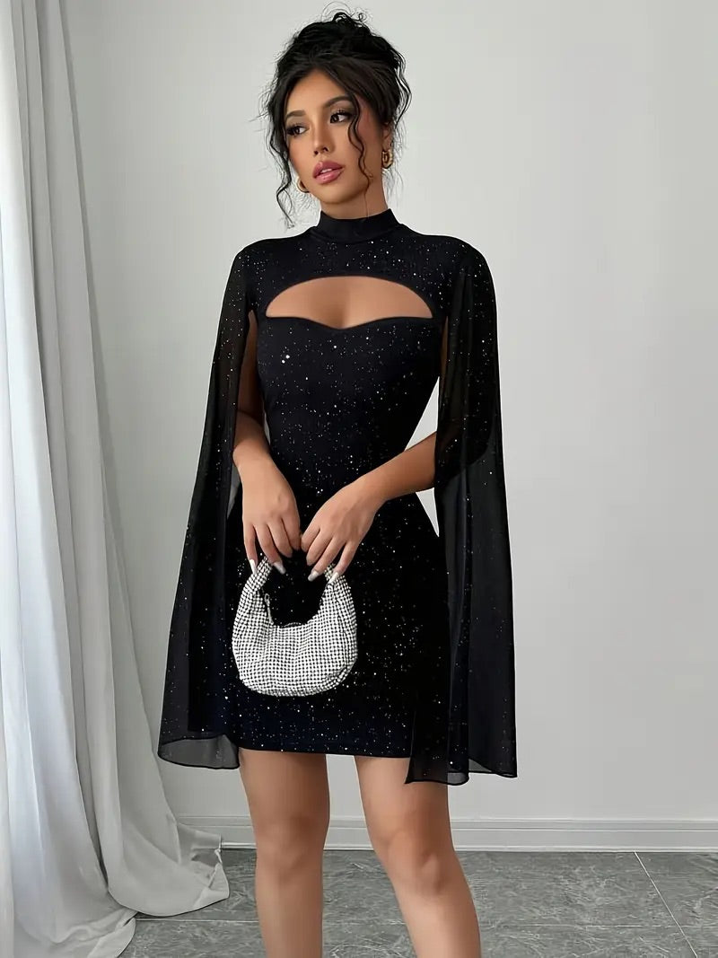 Women'S Stand-Collar Cape Shiny Club Party Mini Dress