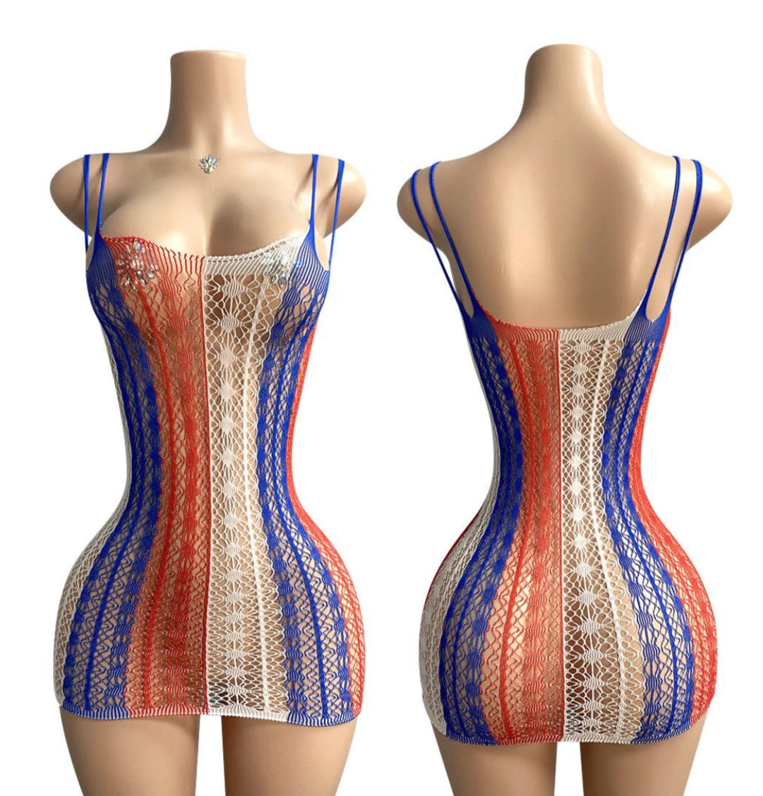 E-M65 white,blue and red exotic dress