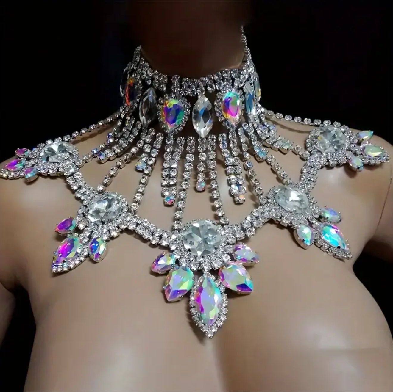 Elegant Rhinestone Choker Necklace] Elegant Boho Rhinestone Choker Necklace 1pcs - Artificial Crystal Statement Jewelry for Women, No Plating, Shimmering Rhinestones Accent, Perfect for Bridal, Wedding, Parties & Valentine's Day Gift