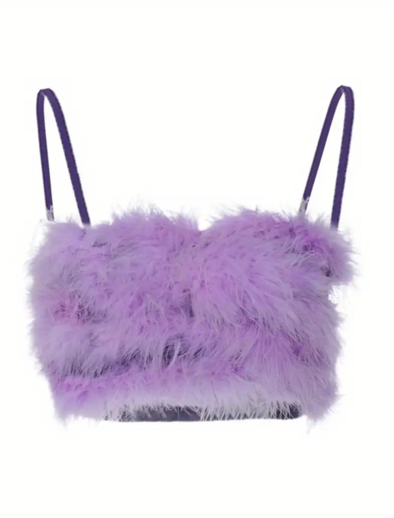 Lavender Plush Women’s Crop Camisole - Soft Square Neck Spaghetti Strap Top, Sexy Backless Design, Perfect for Summer & Casual Wear