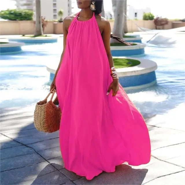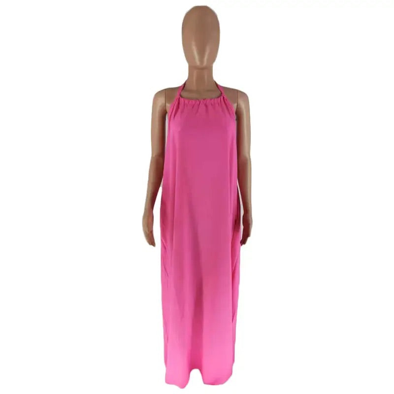 Women's Halterneck Backless Solid Color Swing Maxi Dress