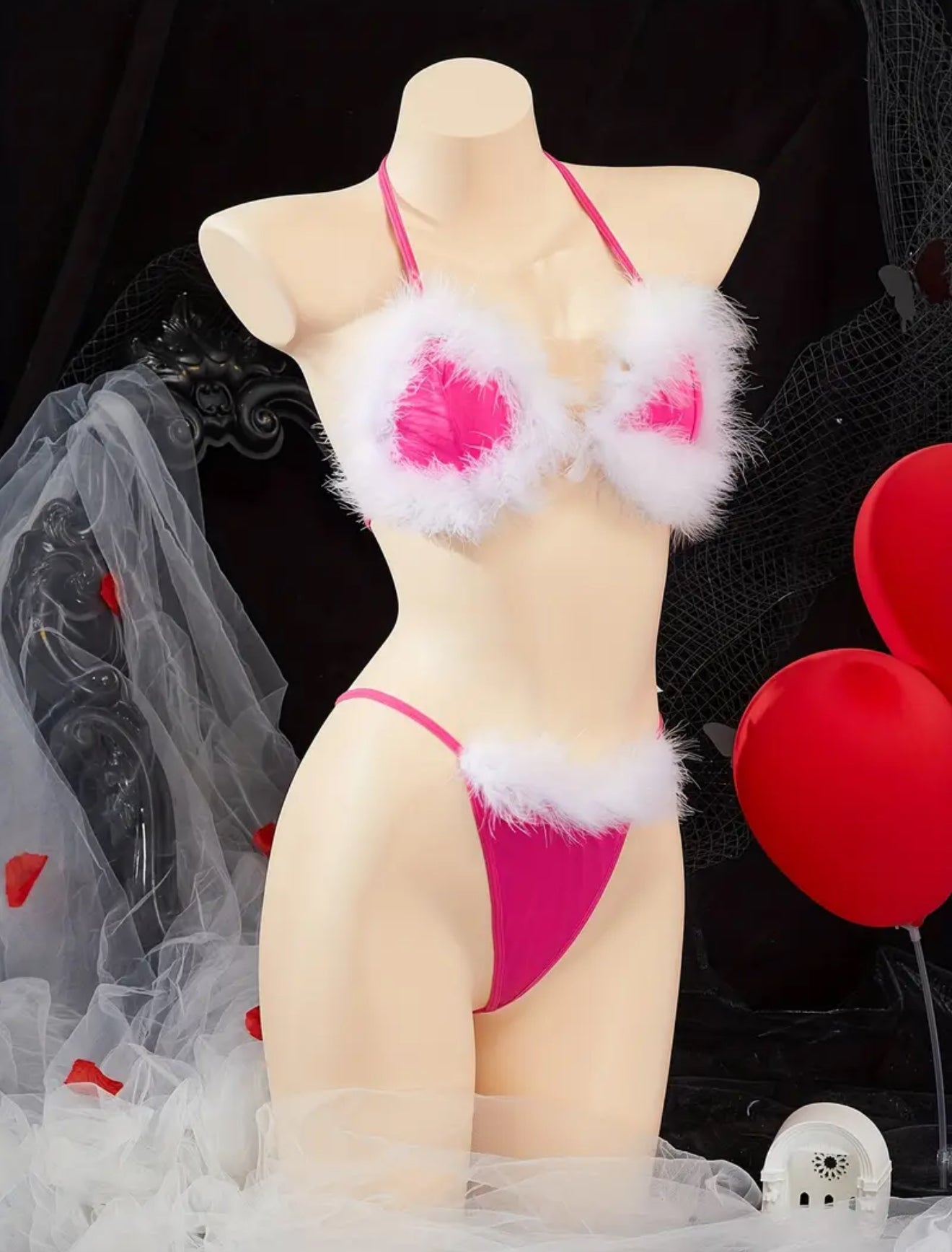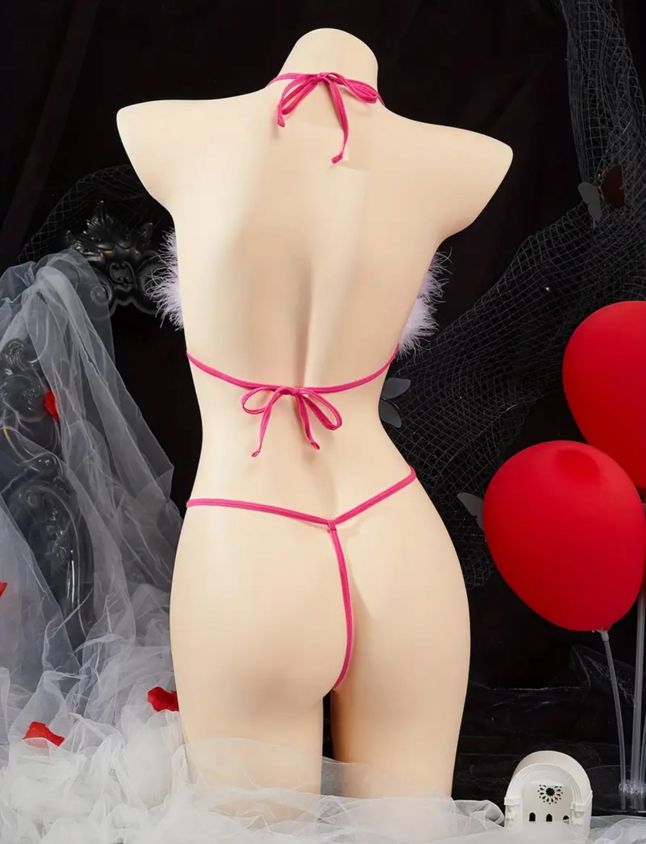 Pink Tie Bow, Women'S Sexy Lingerie Set