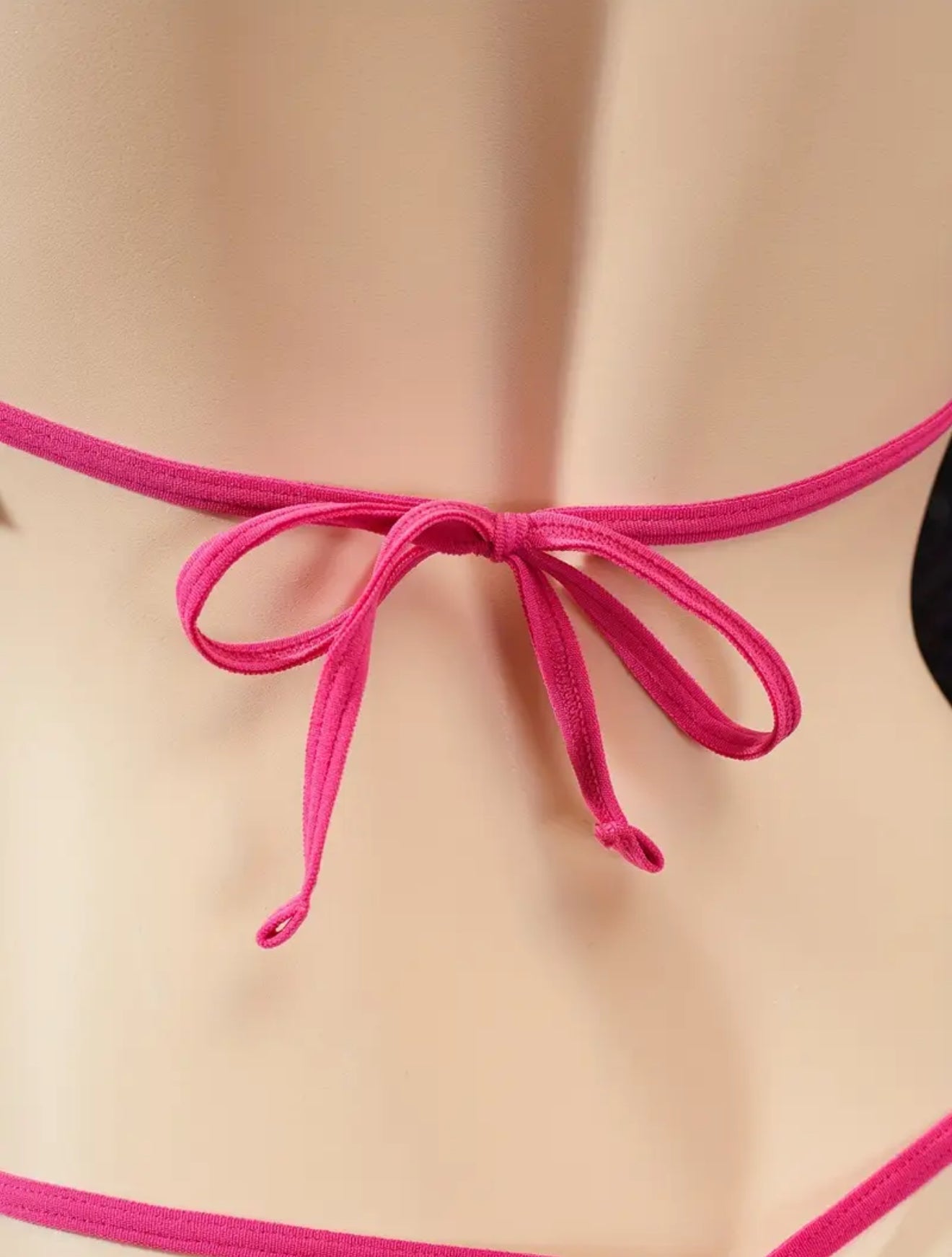 Decoration, Contrast Color Three-Point Tie Bow, Women'S Sexy Lingerie Set