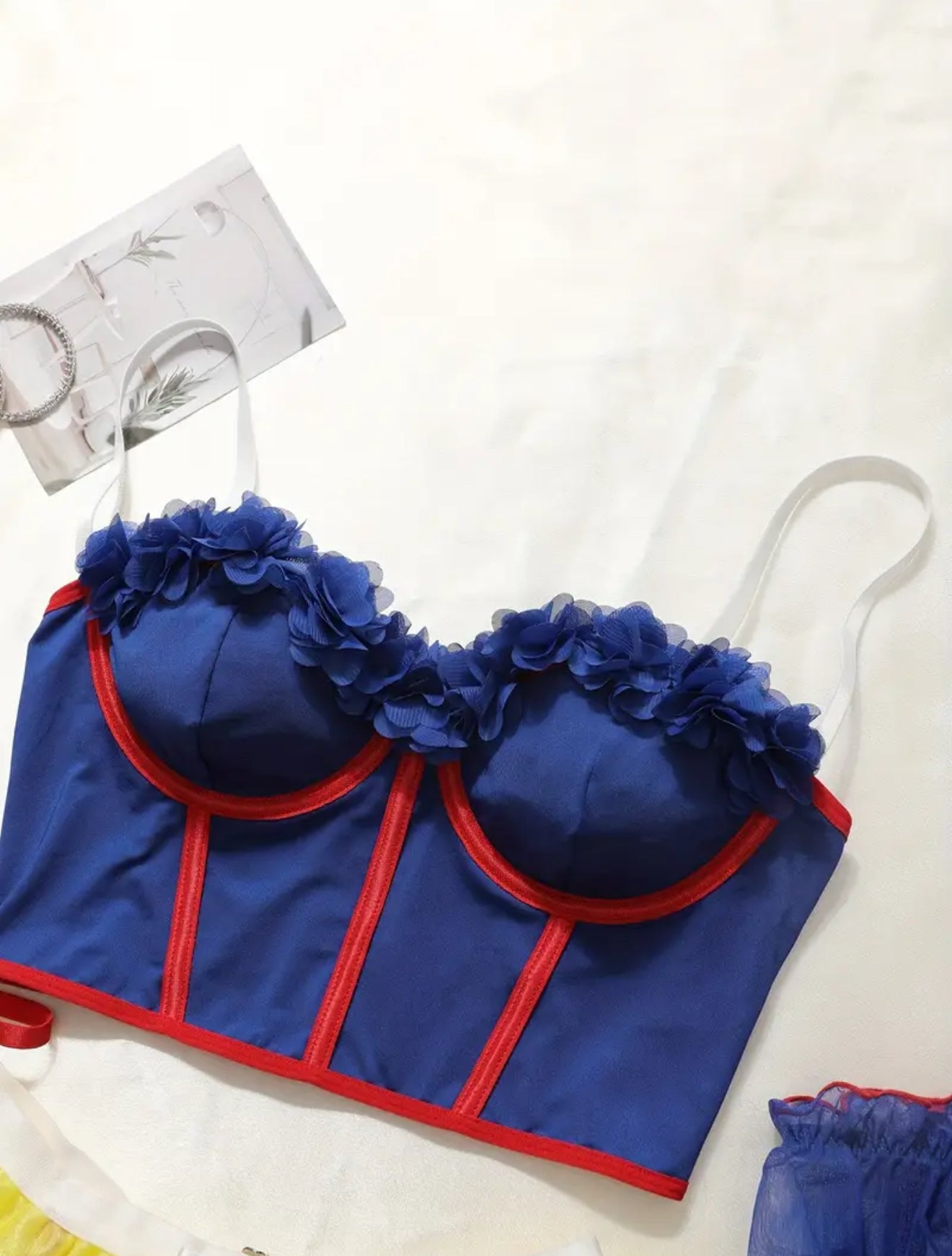 Playing Fairytale Princess Lingerie Set-Delicate Lace Trim Bra Skinny Underwire Top Flirty Short Skirt